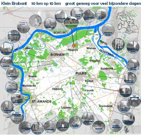 Op deze kaart vind je Klein-Brabant. Het Hart van Vlaanderen is maar 10 op 10 km groot maar biedt bijzonder veel mogelijkheden zoals o.a.: